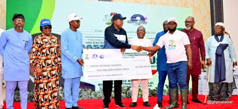 The Cross River State Government has empowered 400 citizens comprising farmers and former members of the defunct Bakassi Defence Force with grants totaling ₦800 million, designed to foster self development, entrepreneurial growth, and productive engagement in agriculture and other ventures.