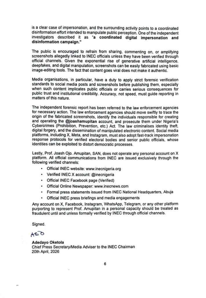 INEC communicates the results of this investigation through the Office of the Chairman while addressing allegations concerning the Chairman. Even if every claim in the report is accurate, the structure of that process raises questions about perception. This is not a judgment on the findings, but rather an observation about how credibility is formed in the public space.